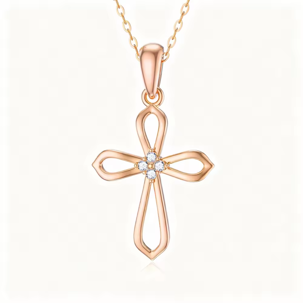 Este exquisito collar muestra un colgante de cruz de Oro Rosa de 10K bellamente elaborado, adornado con brillantes diamantes que reflejan la luz con cada movimiento. Diseñado para mujeres que aprecian la excepcional artesanía y la belleza clásica, esta pieza es lo suficientemente versátil para usarla todos los días y en ocasiones especiales. Ya sea que te estés vistiendo para un evento formal o agregando un toque de elegancia a tu atuendo diario, este collar es el accesorio perfecto. Su diseño reflexivo asegura que pueda complementar una variedad de estilos, lo que lo convierte en una adición esencial a tu colección de joyas. Celebra tu fe y estilo con esta notable pieza que sirve como un recordatorio de belleza y gracia.