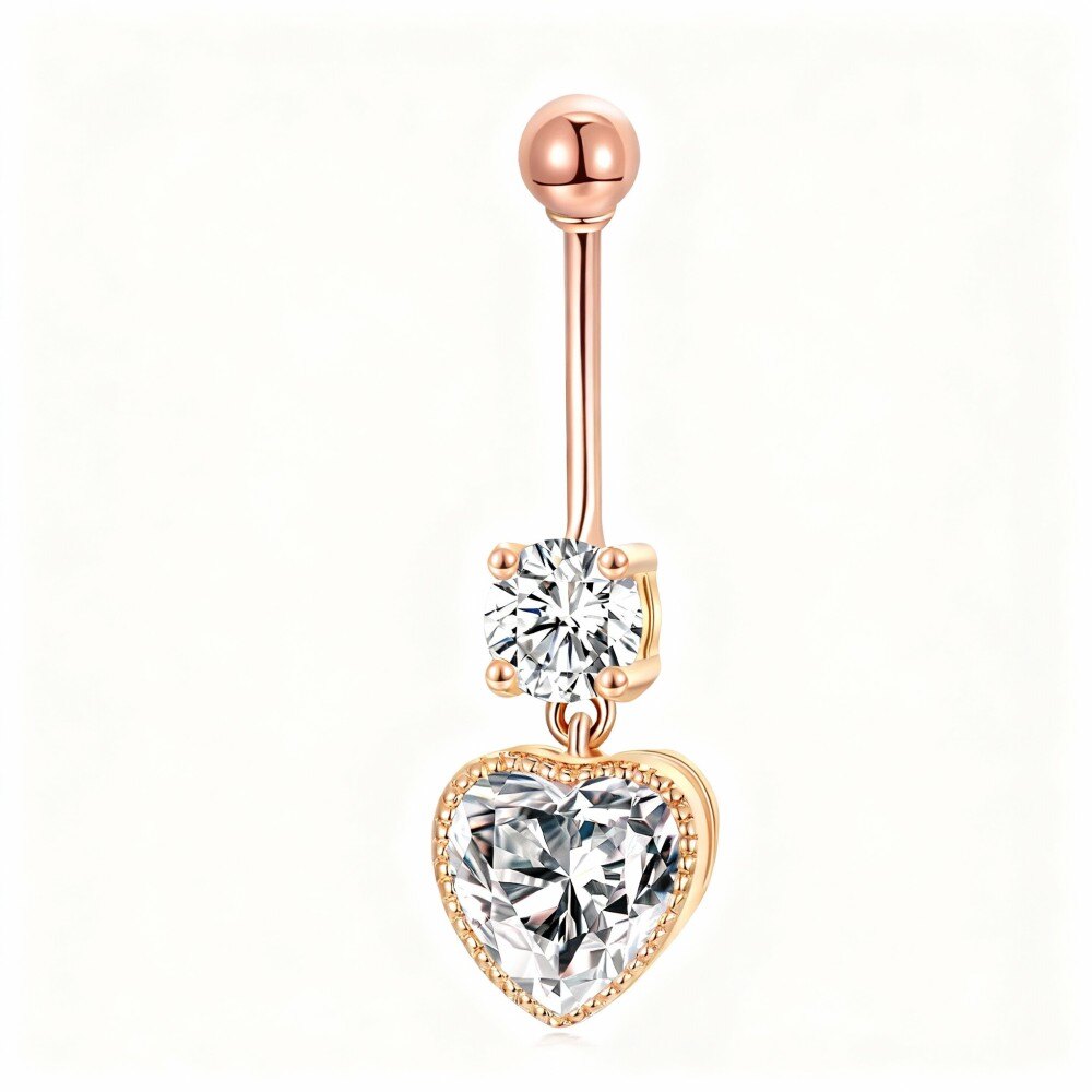 Este exquisito anillo de ombligo presenta un colgante en forma de corazón bellamente elaborado que brilla con circonitas blancas de alta calidad, convirtiéndolo en un accesorio perfecto para cualquier ocasión. Hecho de Oro Rosa de 10K de primera calidad, esta pieza no solo es duradera, sino que también añade un toque de sofisticación a tu look. Los delicados detalles milgrain realzan su encanto, asegurando que se destaque en cualquier colección de joyería. Para mujeres que aprecian la elegancia y desean expresar su individualidad, este anillo de ombligo es una elección ideal. Ya sea que te vistas para una noche especial o le des un toque de brillo a tu atuendo diario, este anillo está diseñado para atraer la atención y dejar una impresión duradera. Abraza el lujo de la joyería fina y eleva tu estilo con esta impresionante pieza de Oro Rosa de 10K, perfecta para regalos o para tu propio deleite.
