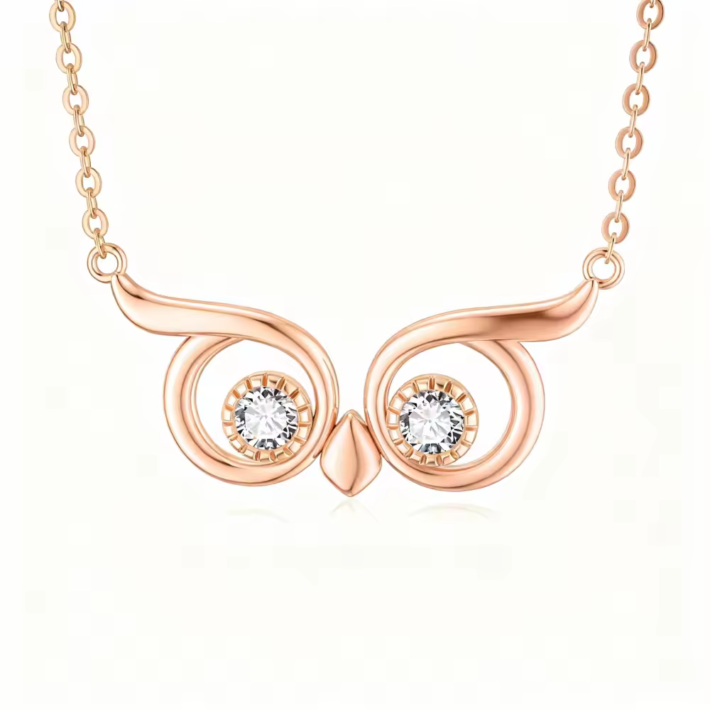 Descubre nuestro elegante collar colgante de búho de Oro Rosa de 10K, una perfecta combinación de encanto y sofisticación, diseñado para mujeres que aprecian joyería única y de alta calidad.
