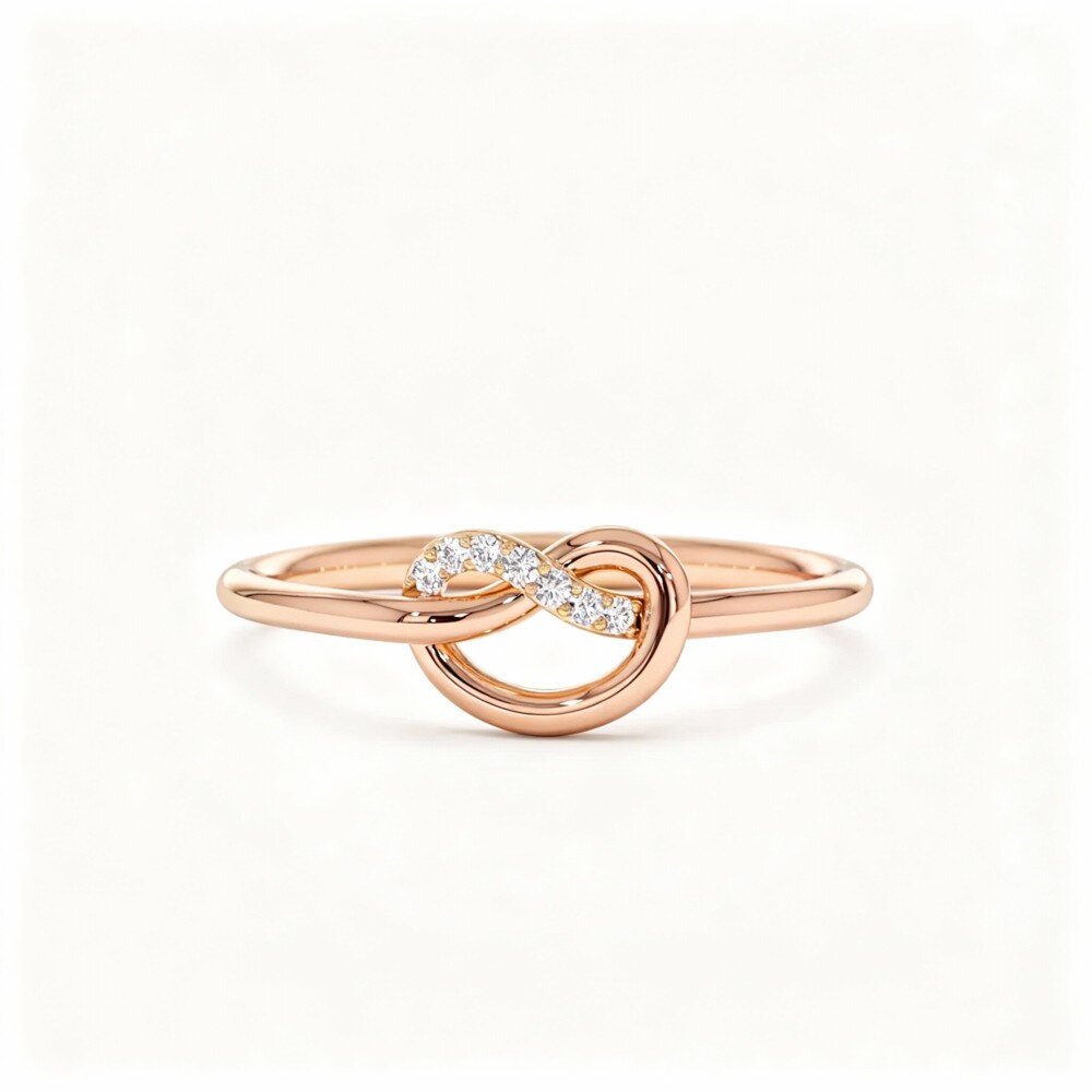 Elaborado con precisión, este excepcional anillo fusiona la artesanía clásica con la sofisticación moderna, diseñado para la mujer contemporánea que aprecia la elegancia. El cautivador diseño del nudo de amor simboliza el profundo afecto y el compromiso, lo que lo convierte en una elección perfecta para compromisos, aniversarios o un regalo especial para expresar tus sentimientos. Con una clasificación de color G y claridad SI, el diamante central irradia un espectacular brillo, mientras que las piedras laterales realzan su atractivo deslumbrante. Cada detalle está meticulosamente pulido para garantizar un brillo de alta calidad que perdura. Este anillo no solo sirve como una pieza de declaración, sino también como un hermoso recordatorio de momentos atesorados en tu vida. Hecho de un lujoso Oro Rosa de 10K, promete durabilidad mientras añade un toque de elegancia a cualquier colección de joyas. Ya sea que se use solo o combinado con otras piezas, este anillo seguramente llamará la atención y capturará corazones.