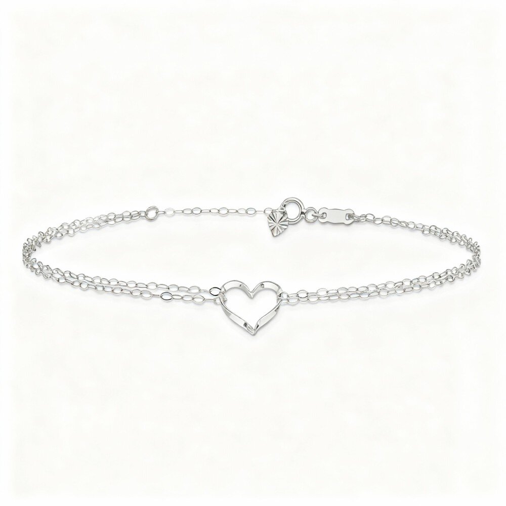 Mejora tu elegancia con esta exquisita pulsera de tobillo de Oro Blanco de 10K en capas, diseñada para mujeres que aprecian los delicados motivos en forma de corazón.