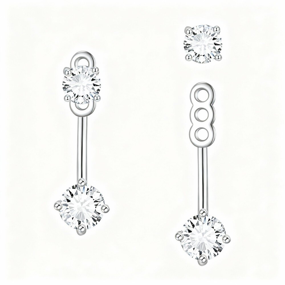 Descubre nuestros impresionantes pendientes de chaqueta de Oro Blanco 10K, adornados con brillantes piedras de Moissanite diseñadas para mujeres elegantes que valoran la sofisticación.