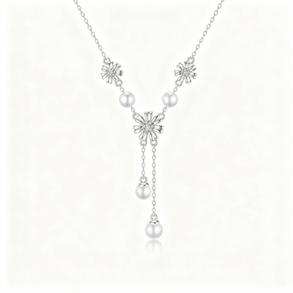 Descubre la belleza de nuestro collar de colgante de Oro Blanco de 10K, que presenta un hermoso girasol y una perla radiante, diseñado para realzar el guardarropa de cualquier mujer.