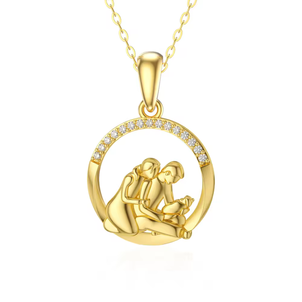 Elaborado con oro de 14 quilates de la más alta calidad, este refinado collar con colgante presenta una moissanita redonda radiante que captura la luz de manera hermosa y simboliza la conexión atemporal entre padres e hijos. Diseñada especialmente para mujeres, esta lujosa pieza añade un toque sofisticado a cualquier conjunto y al mismo tiempo ofrece una forma sincera de celebrar los lazos familiares.