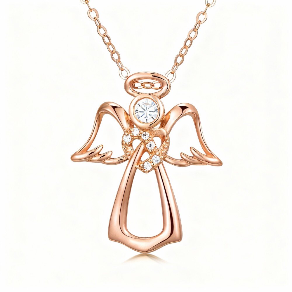 Realza tu elegancia con nuestro hermoso collar colgante de alas de ángel en Oro Rosa de 14K, adornado con brillantes circonios.