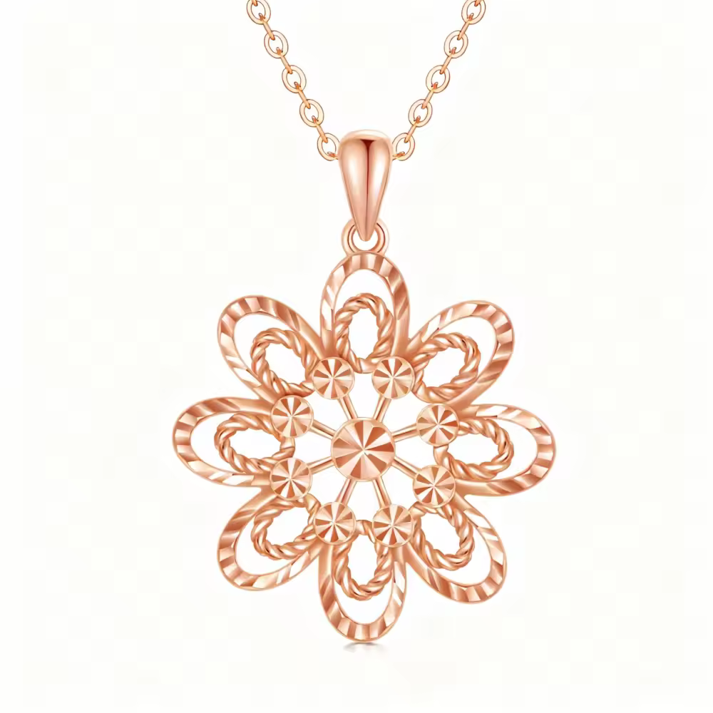 Descubra la elegancia de nuestro collar colgante Daisy de Oro Rosa de 14 quilates, diseñado exclusivamente para mujeres que aprecian la combinación perfecta de belleza atemporal y sofisticación moderna.