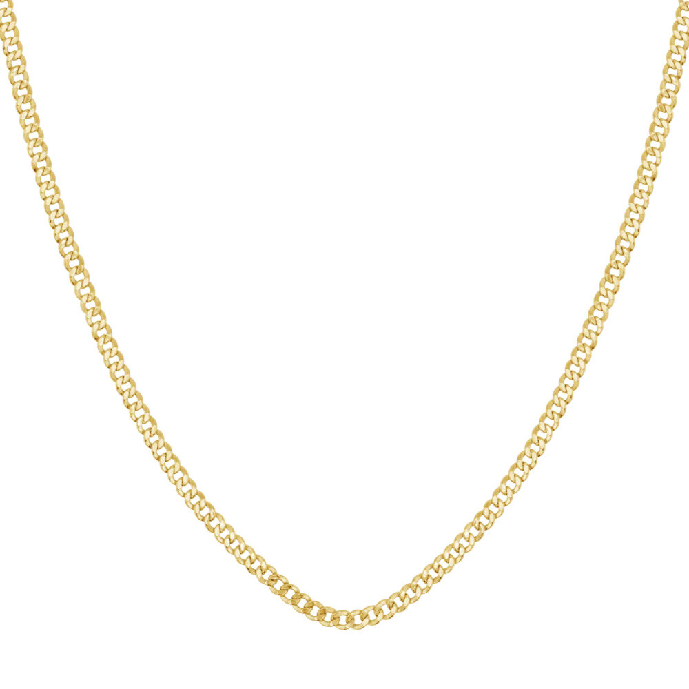 Nuestro lujoso collar de cadena curb en oro 18K encarna una sofisticación atemporal, creado para mujeres exigentes que valoran la simplicidad refinada. Esta pieza premium une durabilidad y elegancia radiante.