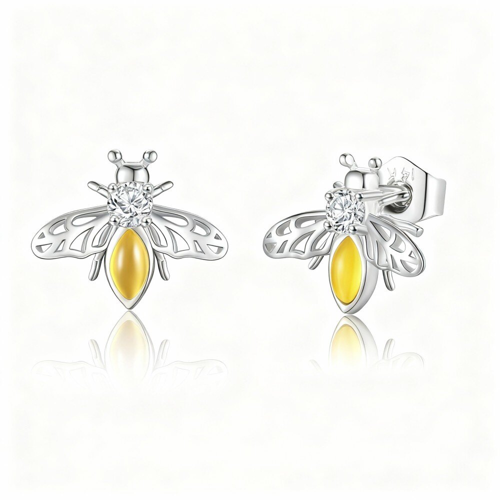 Experimenta la elegancia de la naturaleza con nuestros exquisitos pendientes de abeja en Oro Blanco de 18K adornados con ámbar y circonita brillante.