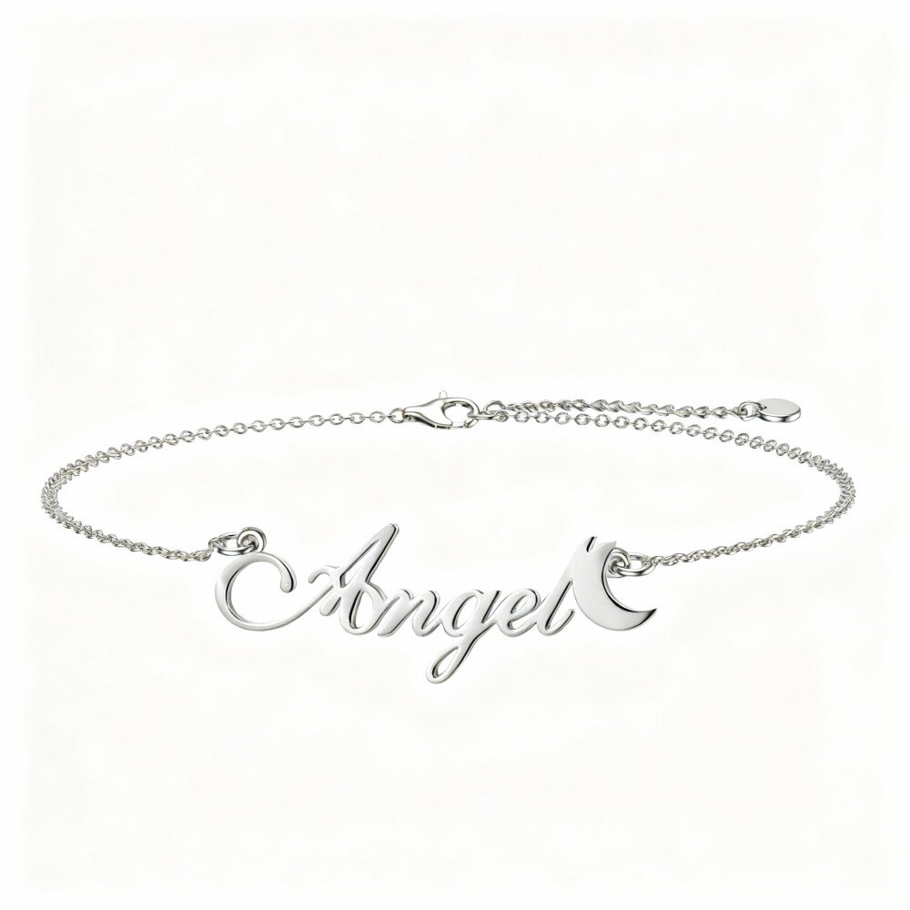 Experimente el encanto de nuestraOro Blanco de 18 quilatesPulsera con nombre personalizado, una combinación perfecta de elegancia e individualidad diseñada para mujeres modernas.