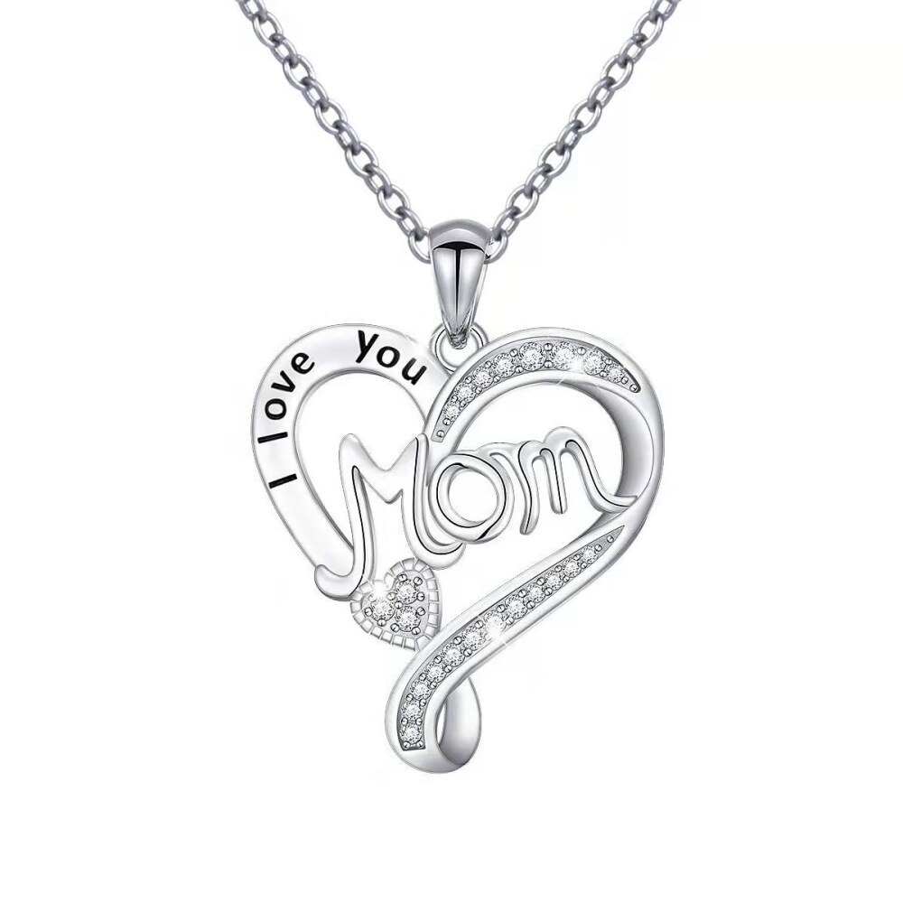 Descubra nuestro exquisito collar colgante de plata esterlina, elaborado con una circonita cúbica en forma de corazón, elegantemente bañado en oro blanco y grabado con I Love You: el regalo perfecto para mamá.